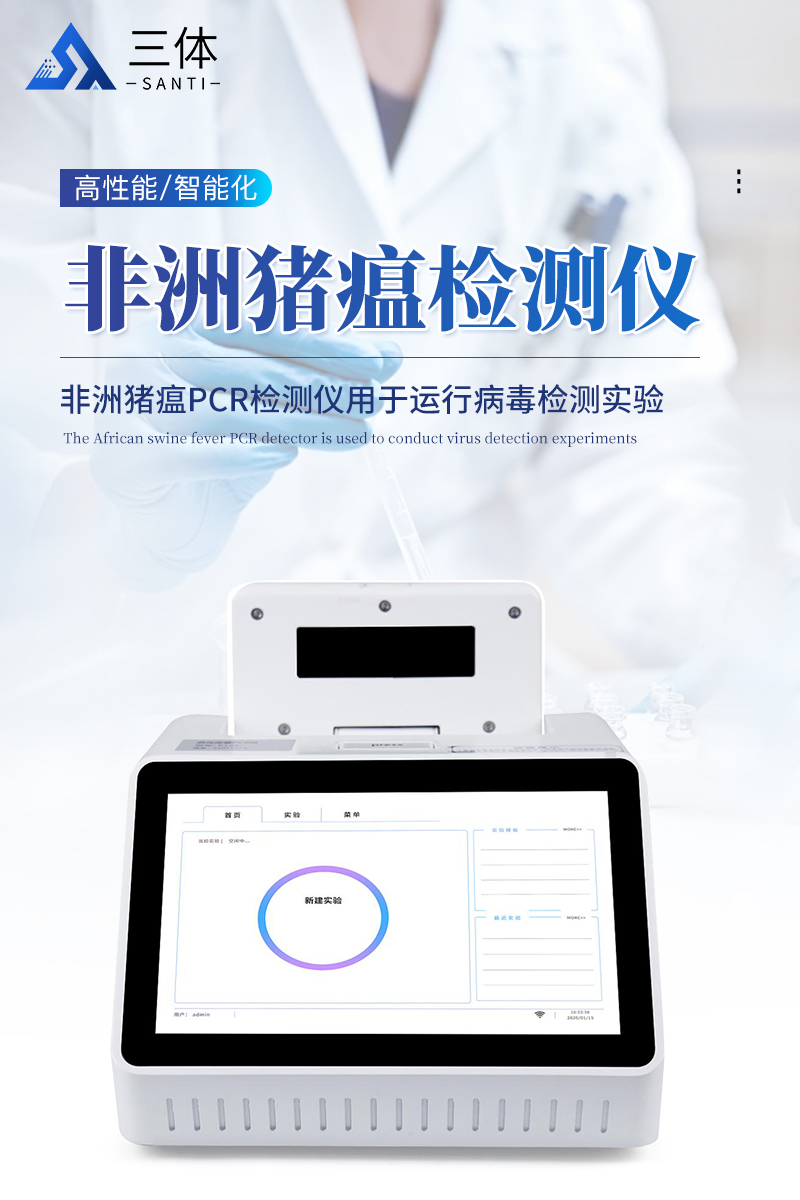 非洲猪瘟PCR检测仪(实时荧光定量PCR仪支持变温检测)用于运行病毒检测实验,并对实验数据进行分析;仪器既可在实验室内操作,又可用于野外科学实验,配合相应试剂,对取自待检测样本的分析物或其他分析物中的目标核酸进行快速、准确的定性检测。