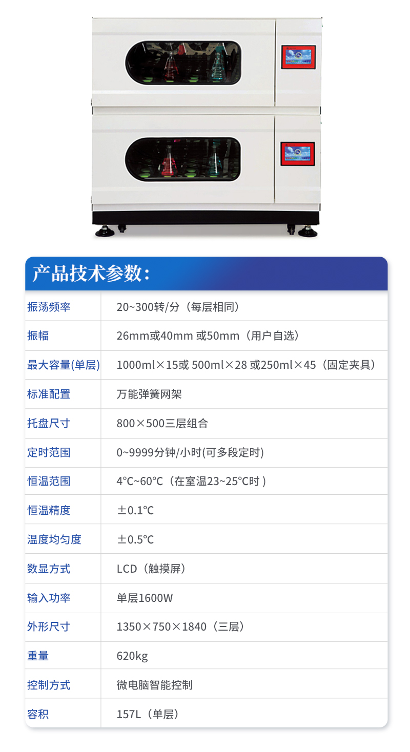 | 振荡频率 Oscillation frequency | 20~300转/分(每层相同)20~300rpm |