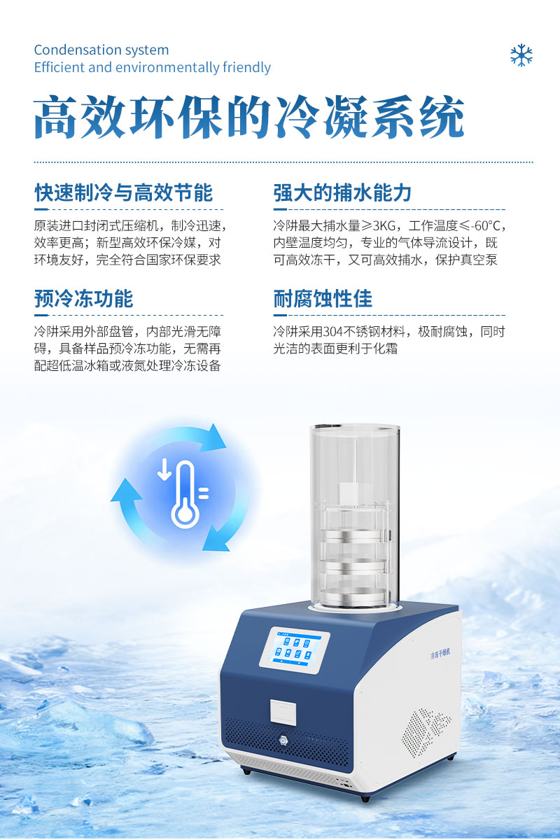 冷冻干燥机是一种利用真空冷冻干燥技术进行物质干燥的设备。其基本原理是将含水物质先冻结成固态,然后通过升华原理使水分从固态直接升华为气态,从而去除水分,保存物质。冻干机广泛应用于医药、生物制品、食品等领域,具有干燥效果好、保存时间长、复水性好等优点