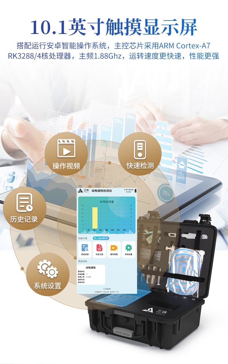 该仪器是一款高效、便捷的食品检测设备,专为识别肉类的真假而设计。可以对猪肉、牛肉、羊肉、马肉、驴肉、鸭肉、鸡肉、鹅肉等各种动物源性进行检测。能够迅速、准确地检测肉类及肉源性种类,确保所食用的肉类真实可靠。检测迅速准确,为各检测单位提供专业的服务。